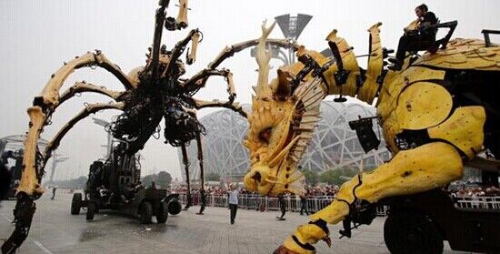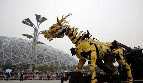 10月17日至19日,作為紀(jì)念中法建交50周年的重要活動之一,法國機(jī)械“龍馬”在京啟動巡演。受中國神話故事的啟發(fā),本次“龍馬”巡演的劇本設(shè)定為女媧補(bǔ)天之后,在九重天上看到人間并不太平,于是派“龍馬”下界查看。由于天洞大開,一只調(diào)皮頑劣的蜘蛛也趁機(jī)來到人間作亂?!褒堮R”和蜘蛛隨即展開爭斗。最終,“龍馬”感動了蜘蛛,雙方化敵為友,人間恢復(fù)了安寧。