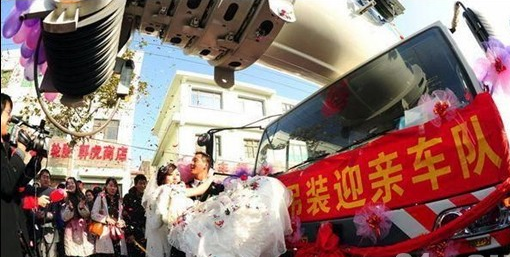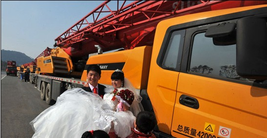 吊車組成,陣容既奇葩又豪華??吹男【幮陌W難耐的,就為大家一起來八一八那些年用吊車舉行的婚禮吧!