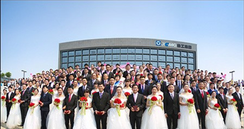 徐工集團(tuán)積極倡導(dǎo)簡約之風(fēng),自2012年以來,已連續(xù)舉辦了4年集體婚禮,共計155對新人在徐工集團(tuán)搭建的舞臺上,攜手步入了浪漫的婚姻殿堂。每年徐工集團(tuán)董事長、總裁、黨委書記王民都會為新人送上賀禮和同心印章,并鼓勵新人熱愛生活、相親相愛、尊老敬老,為徐工集團(tuán)的發(fā)展、中國工程機(jī)械的發(fā)展攜手奮進(jìn)、貢獻(xiàn)力量。