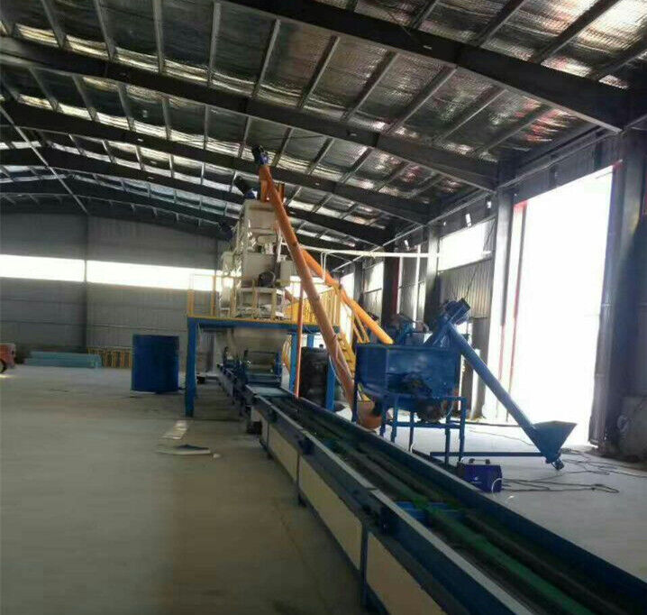 1、自動化程度高:整條生產線采用PLC電腦自動化控制,實現了自動上模板、自動涂脫模劑、自動配料、自動上漿、自動鋪布、自動攤平、自動分切、自動復壓、自動接板等自動化功能。